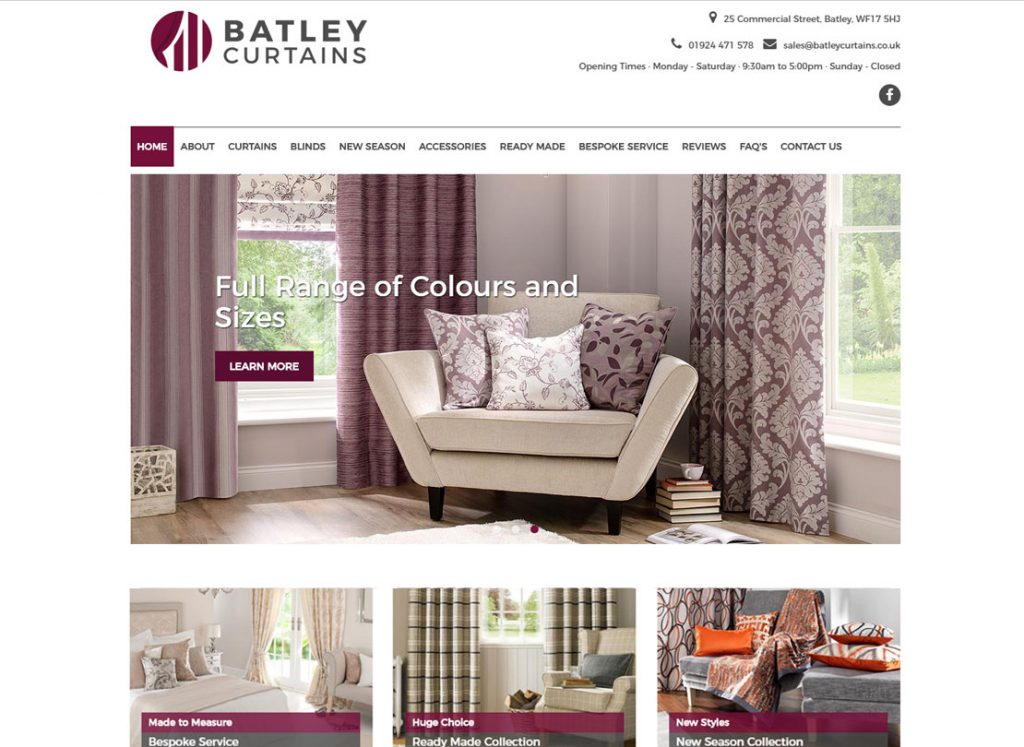Brochure Website showcasing a range of Batley Curtains and blinds, fabrics and accessories.